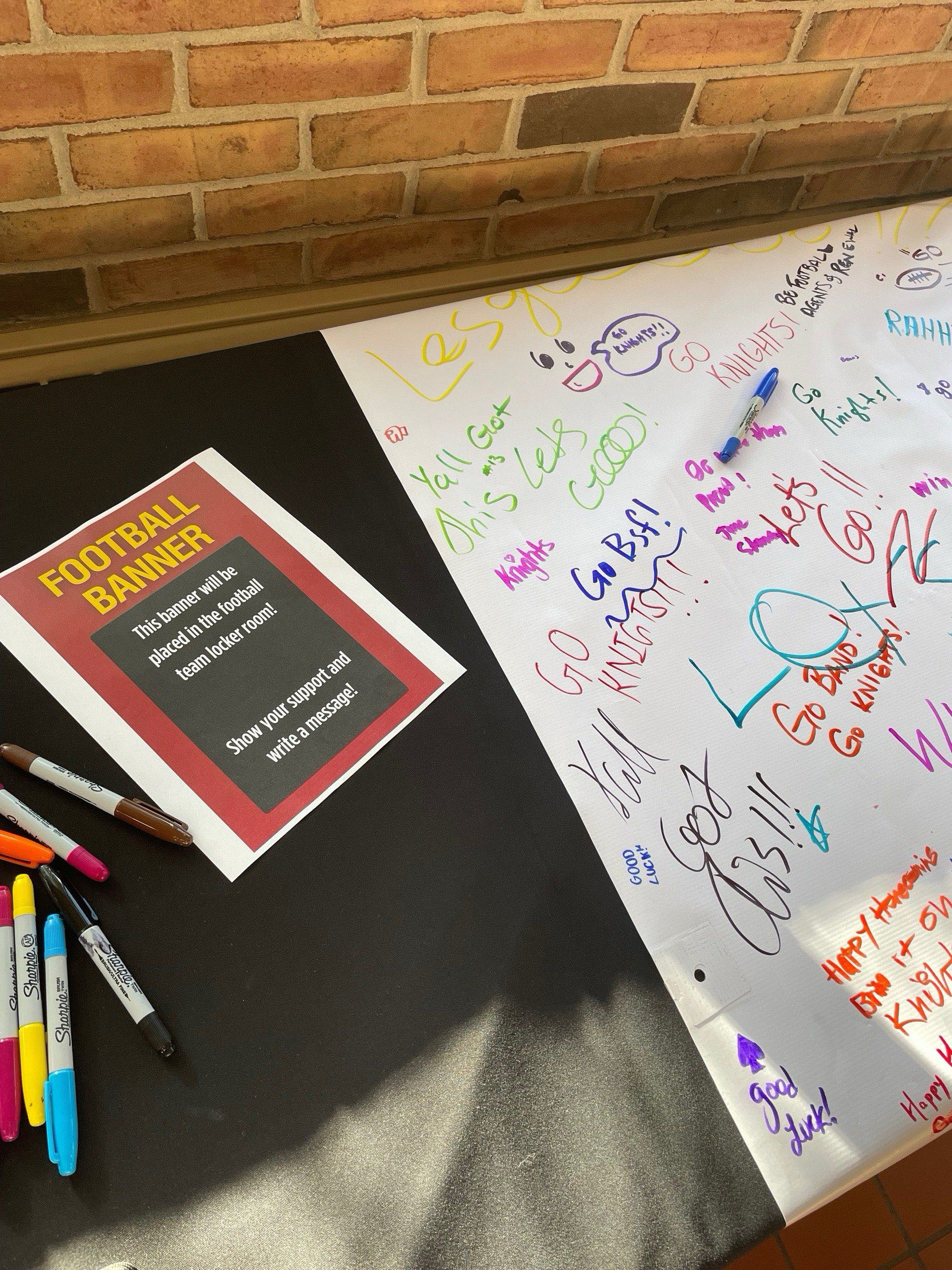 Außerdem gab es das Homecoming-Abendessen mit einem Oktoberfestmenü. Die Tische in der Mensa wurden eingedeckt und es gab super leckeres Essen. Zum Beispiel gab es Spätzle, Schnitzel, Gurkensalat und auch viele Desserts. Es gab auch eine Station zum Kennenlernen des Footballteams, wo man ein Banner für die Umkleidekabine unterschreiben konnte.